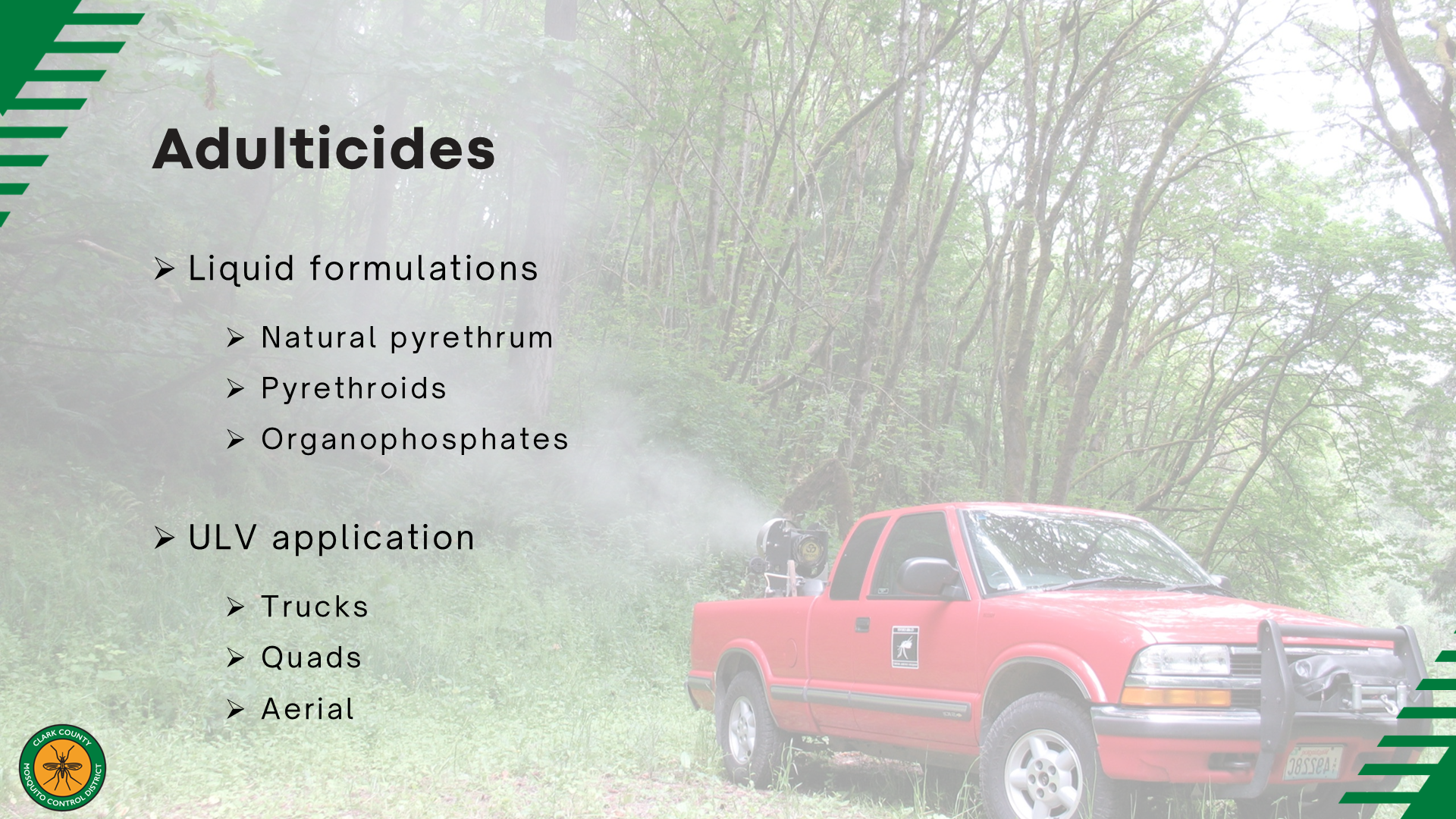 - Limited, targeted use of adulticides when necessary, such as during high mosquito activity or disease outbreaks.